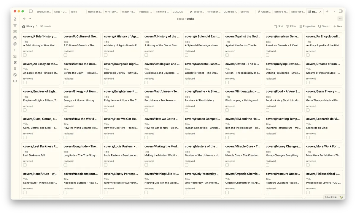 My approach to this was to build an Obsidian Base (basically a database of sorts) and make it look like a library where I can add reviews, other related artefacts and use the absurd number of CLI tools to do other fun things.